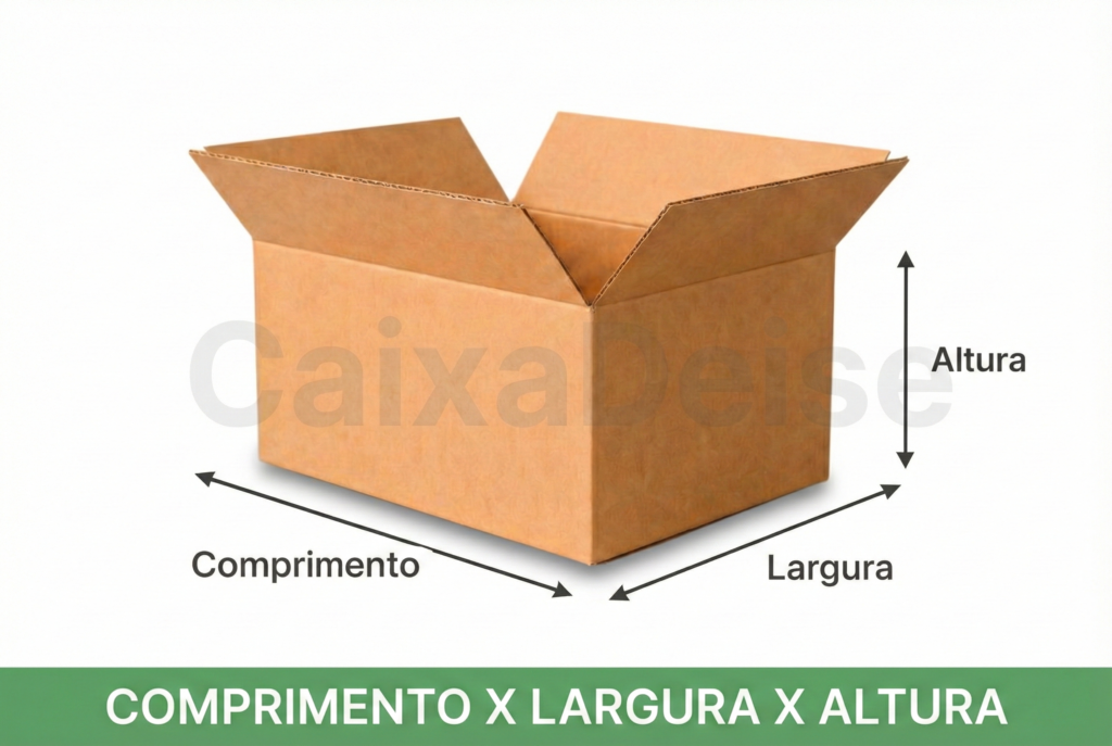 O que é Comprimento, Largura e Altura em uma caixa?